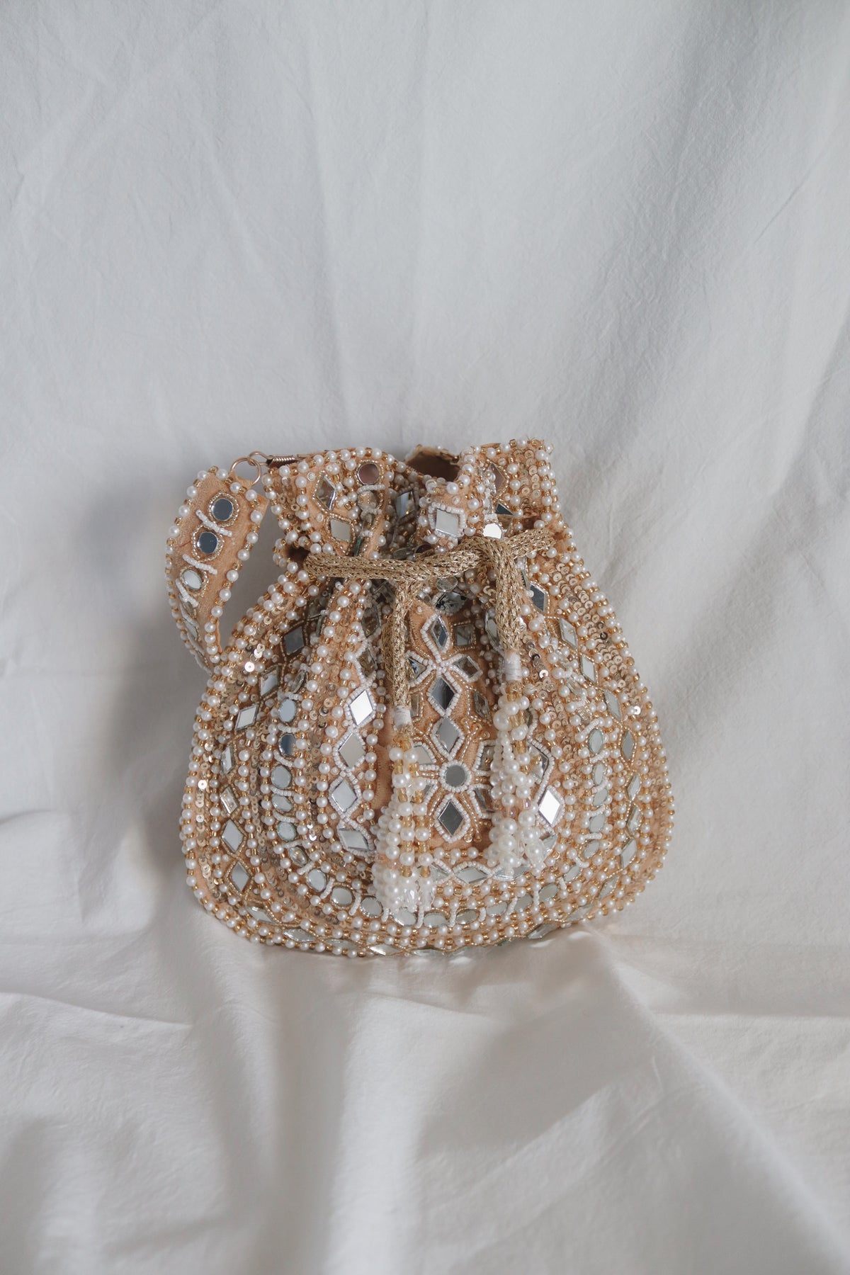 Champagne Pearl Mirror Potli Bag